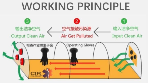 Negative Pressure System The ceiling of the medical cabin is equipped with a negative pressure system to form a negative pressure air flow to ensure that the patients exhaled air does not circulate in the medical cabin.