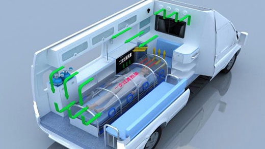 Ozone Disinfection System Equipped with an ozone system to completely disinfect the medical cabin