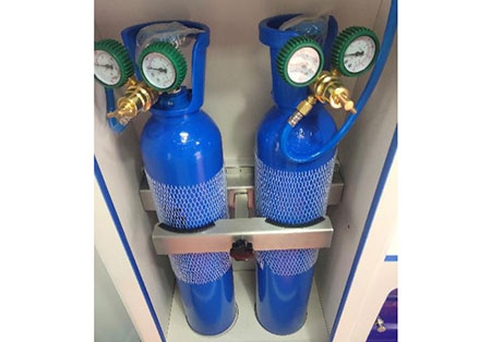 Centralized Medical Oxygen Control System Equipped with a 2*10L oxygen cylinder, an oxygen pressure gauge displays the pressure value in real time; valve switching can be easily made between two oxygen cylinders. Two oxygen terminals: an oxygen inhaler and a ventilator connector.