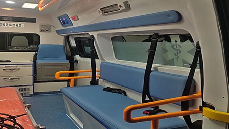 The negative pressure ambulance features a simple and modern design in appearance. The car lights are perfectly integrated in the car body. The ambulance comes with an interior in 1.9m height, making you stand freely without trouble.