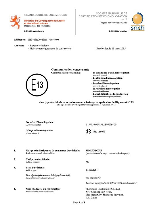 • Certificación de Frenos LCK6898H R13