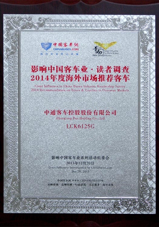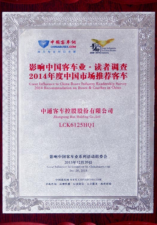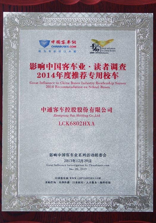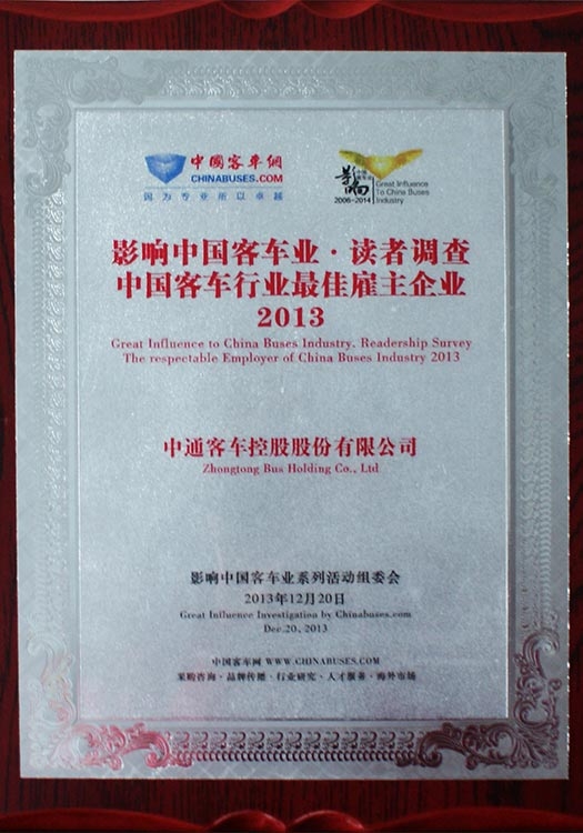 • Empleador Respetable en la Industria China de Autobuses de 2013