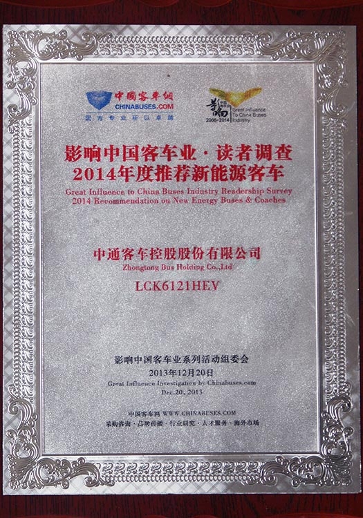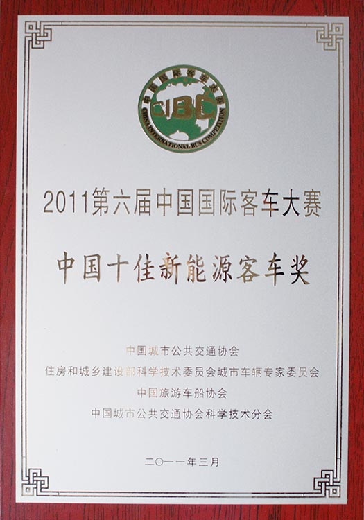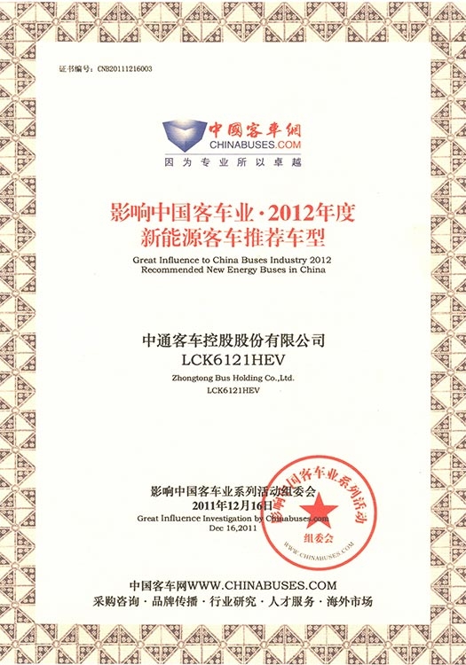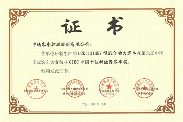 • Premios TOP 10 de China a Autobuses de Energías Nuevas LCK6121HEV