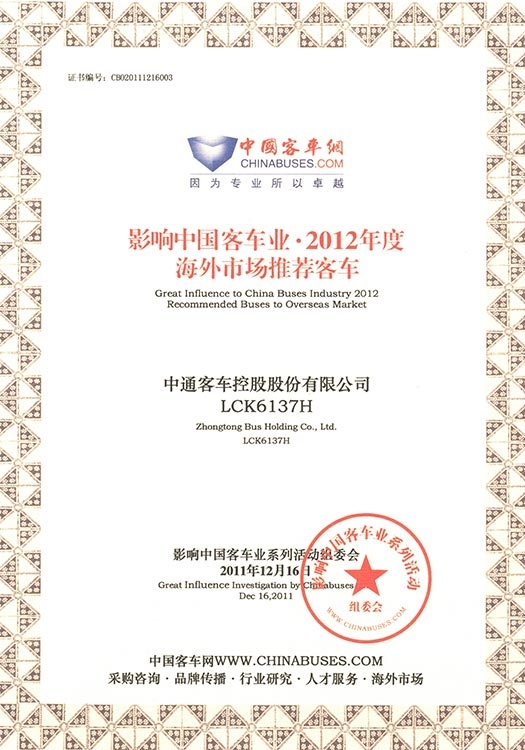 • Autobuses Recomendados para el Mercado Exterior en 2012 LCK6137H