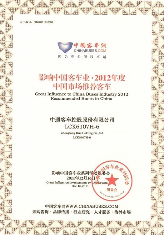 • Autobuses Recomendados en China en 2012 LCK6107H-6
