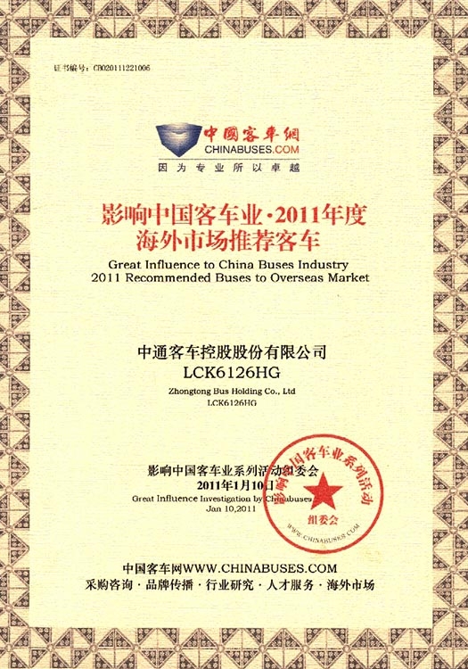 • Autobuses Recomendados para el Mercado Exterior en 2011 LCK6126HG