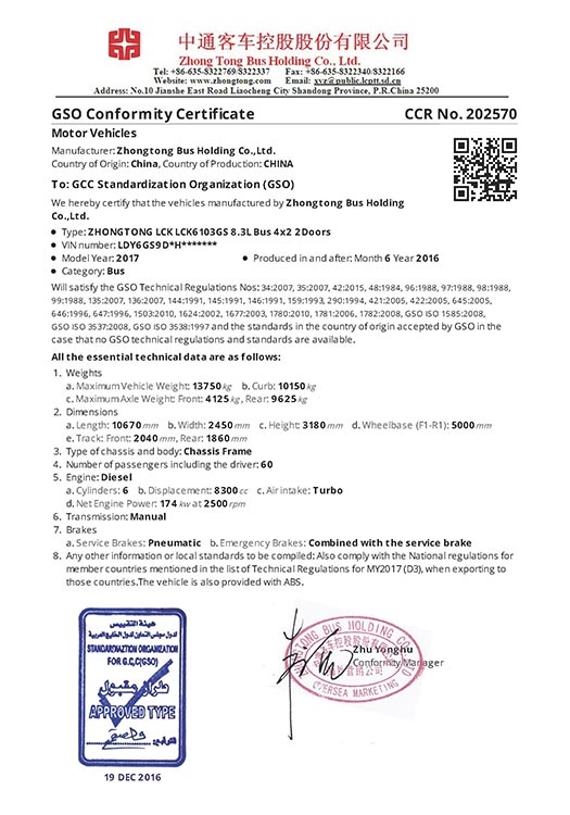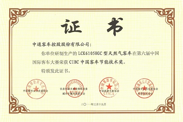 • Premios CIBC de China a Autobuses que Ahorran Energía LCK6105HGC