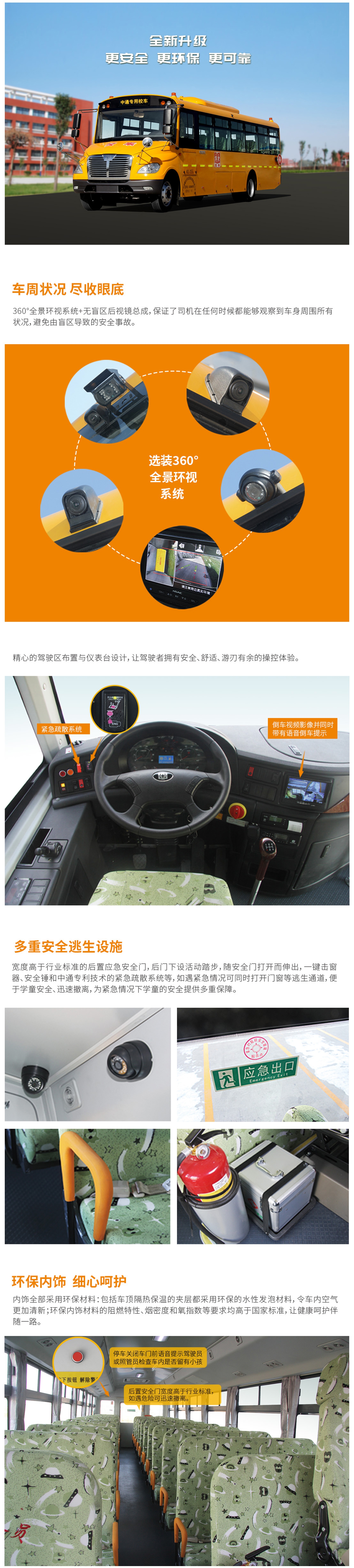 | 服務(wù)設(shè)施及其他 | 【標(biāo)配項(xiàng)】車內(nèi)外錄像監(jiān)控系統(tǒng)、校車標(biāo)志燈、停車信號(hào)牌、彩色倒車監(jiān)視器、帶衛(wèi)星定位功能行車記錄儀、急救箱、校車專用標(biāo)示、滅火器、遮陽(yáng)簾。【選裝項(xiàng)】空調(diào)、強(qiáng)制或簡(jiǎn)易水暖、前后路牌、電動(dòng)擊窗器、后安全門伸縮踏步。 |