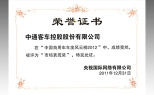 中國商用車年度風(fēng)云榜2012-市場表現(xiàn)獎