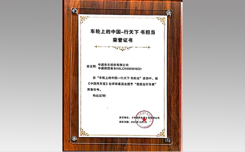 中通H9獲評“旅游客車創(chuàng)新產(chǎn)品”