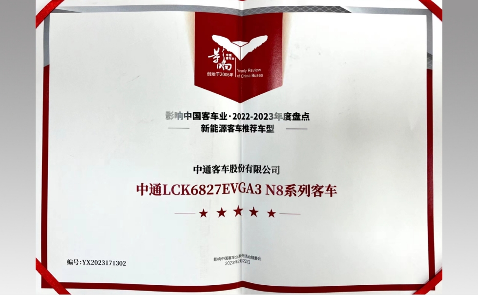 中通LCK6827EVGA3 N8系列客車榮獲